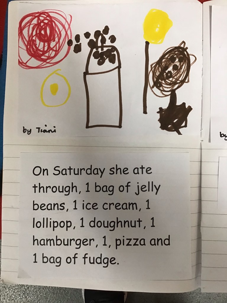 This week we went onto the innovation stage of our learning about the very hungry caterpillar and came up with our own version of the story called The very hungry Mrs Aplin-Moore.