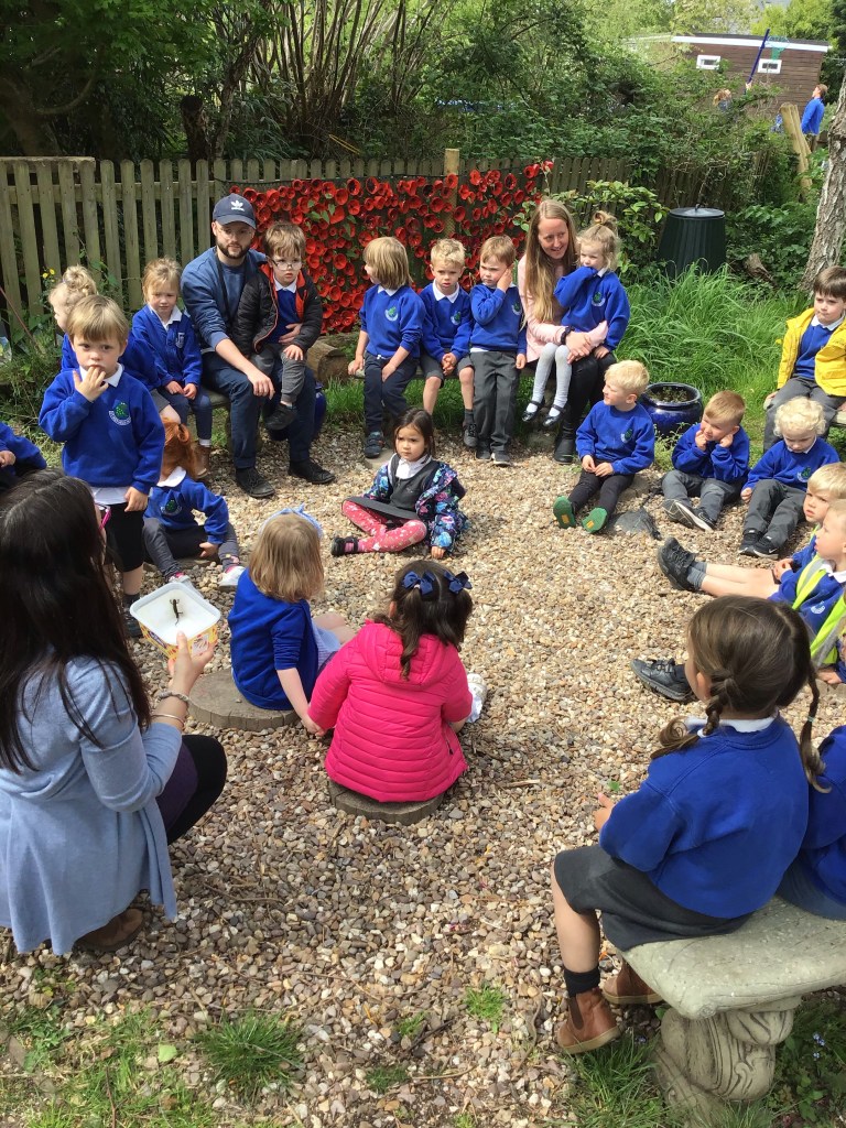 Today we moved the mud kitchen and found a newt hiding in a hole in the wall! We carefully carried him inside and found a pot so that we could look at his beautiful skin. Mrs Knight showed us where the secret garden is and we took him to the pond where he can safely make a home. We were very excited to find him and we are all looking forward to finding more creatures in our garden this term.
