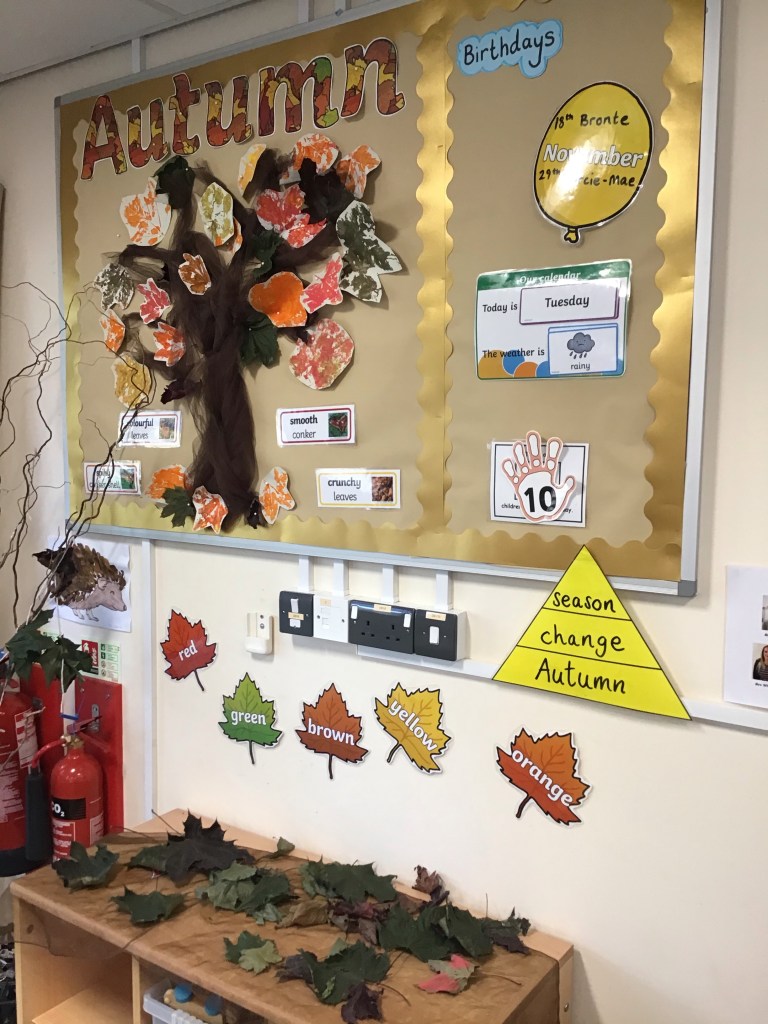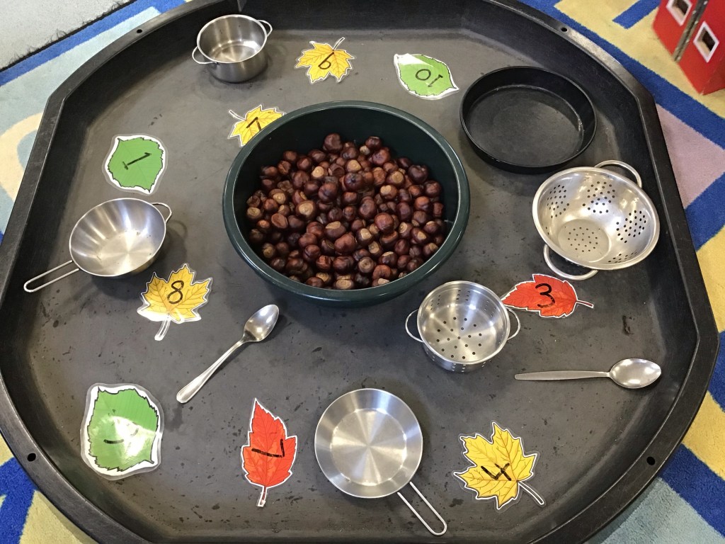 We have been busy in Froglets creating our Autumn tree and talking about what we can see all around us in Autumn. We have been looking for beautiful leaves, all different colours and counting conkers! Sometimes if we are quiet in the garden we spot a squirrel looking for acorns in the Orchard and watching the leaves fall off our enormous sycamore tree! Happy Autumn Everyone!