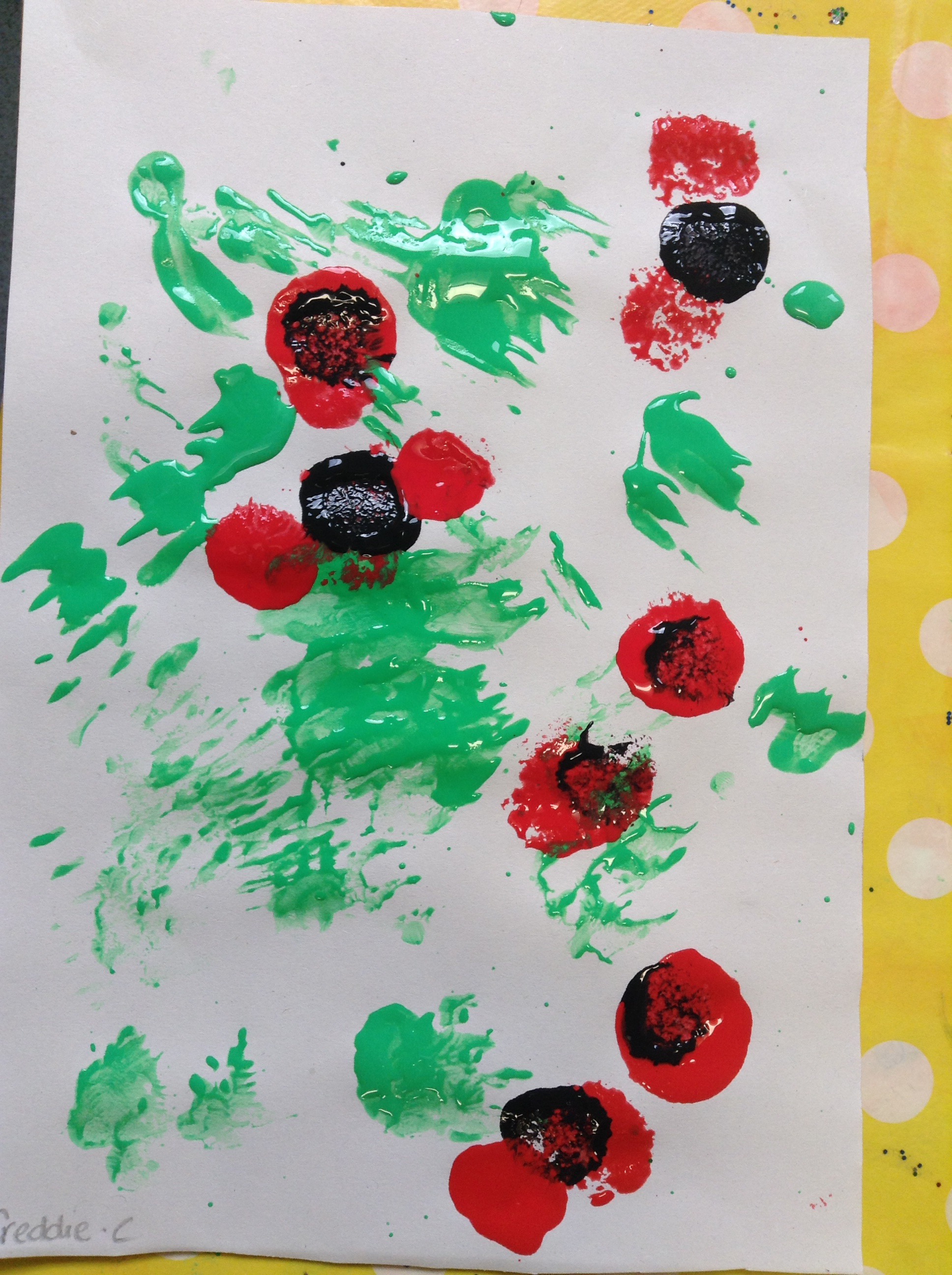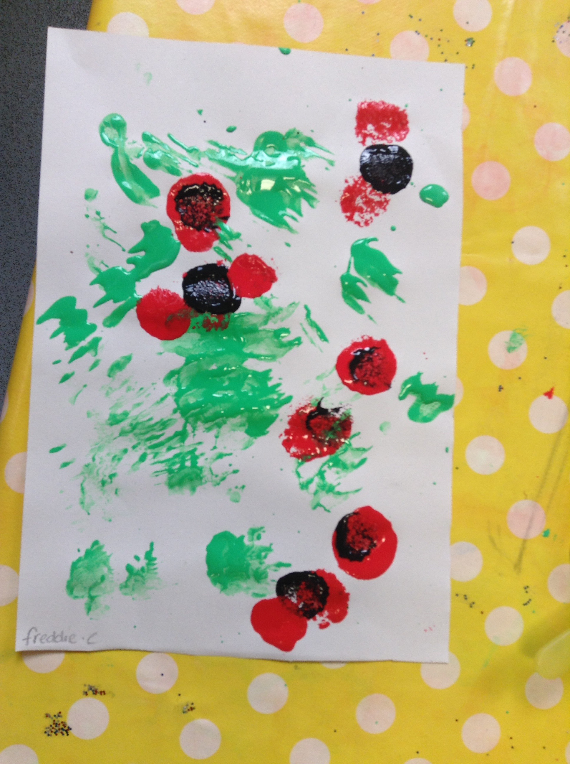 Last week on Friday we celebrated Armistice day by creating poppies in our classrooms. We also had an Autumn walk around the grounds and created leaves with natural things that we found. ![]()