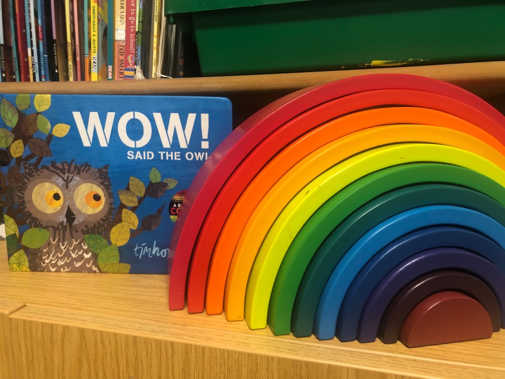 This term we have focused our learning on a lovely story called, ‘WOW! Said the owl’ by Tim Hopgood. The story is about a little owl who stays awake in the daytime and finds beautiful colours in the world so we have also been finding, matching and exploring lots of colours at Froglets. We even spotted some rainbows 🙂